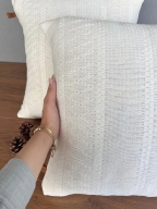 Sarra Natural Otantik Kırlent Kılıfı, Bu kırlent kılıfı, oturma odanızda, yatak odanızda veya balkon gibi açık alanlarda dekorasyonunuzu tamamlamak için mükemmel bir aksesuardır. Minimalist, bohem, rustik ve doğal tarzlarda döşenmiş evler için ideal bir tamamlayıcıdır. Tek başına veya farklı desenlerle kombinlenerek kullanılabilir, yaşam alanınıza doğal bir sıcaklık katar.