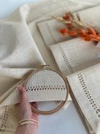 takımı, yüksek kaliteli linen kumaştan üretilmiştir ve köşe detayları ile